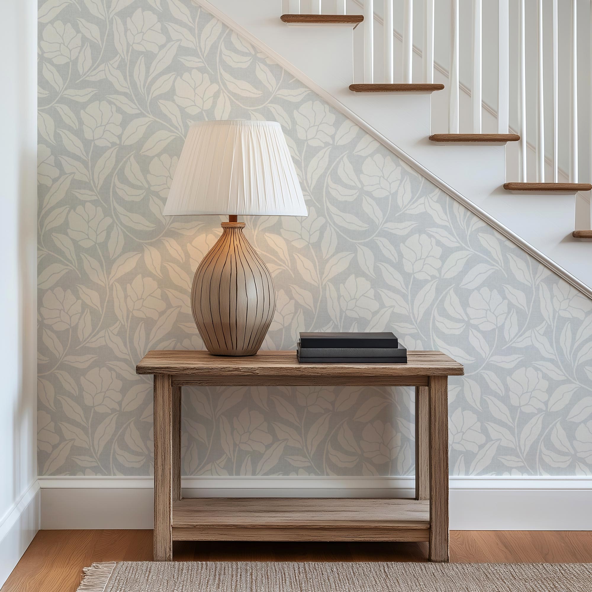 The flowing pattern brings a gentle sense of movement to the wall, settling easily into everyday spaces such as hallways, stairwells, and bedrooms.